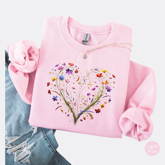 Wildflower Heart Crewneck Sweatshirt | Nature Inspired Floral Pullover