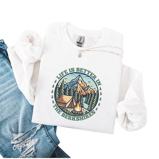 Life Is Better in the Berkshires Camping Sweatshirt Mountain Campfire Outdoor Pullover