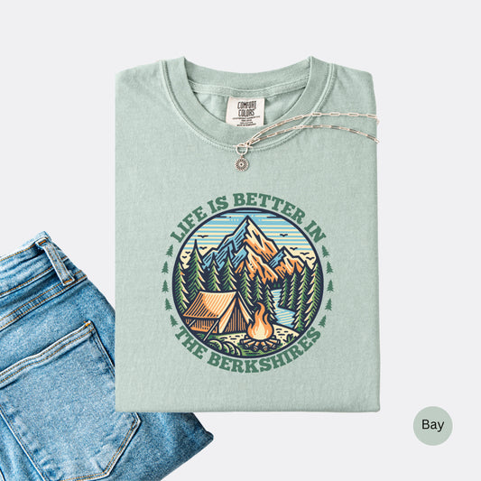 Life Is Better In The Berkshires Camping T-Shirt – Mountain Campfire Outdoor Tee