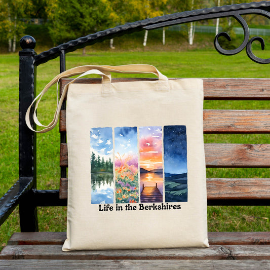 Life in the Berkshires Tote Bag – Four Seasons Nature Scene – Cotton Canvas